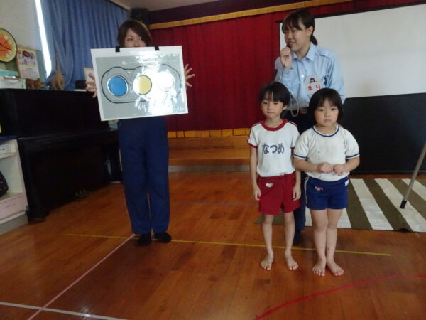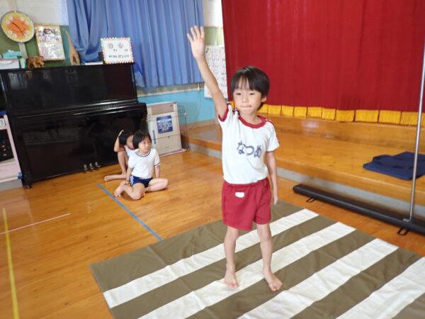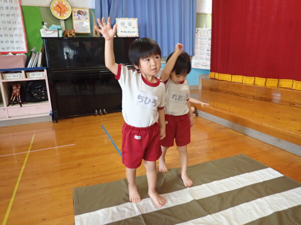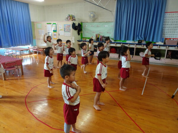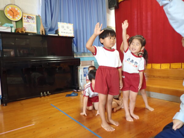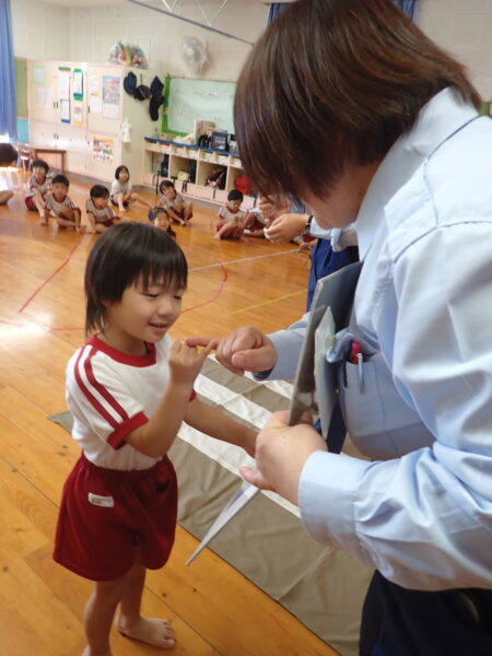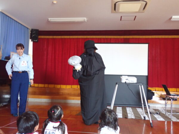 2025年10月07日(火)交通安全教室 10月6日(月)🚥🚙 今年度2回目の交通安全教室を行いました。なんと「できるニャン」🐈というハラマキを巻いたネコが登場して、「できるニャン体操」をみんなでやり、そのあと信号のある横断歩道の渡り方を教えて頂きました。みんな、上手にできるニャン!!(=^・^=)